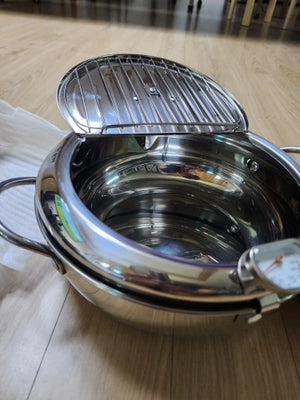 Say goodbye to guesswork in the kitchen. This fryer pot comes with a built-in thermometer, ensuring perfectly cooked tempura and crispy delights every time. Enjoy stress-free cooking with consistent results.